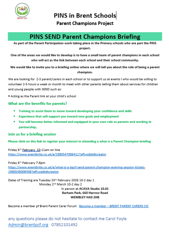 Brent Parent and Carer Forum: https://brentpcf.org/